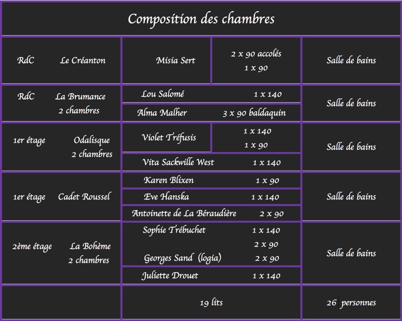 Nous avons donné à chacune des chambres le nom d’une écrivaine célèbre.